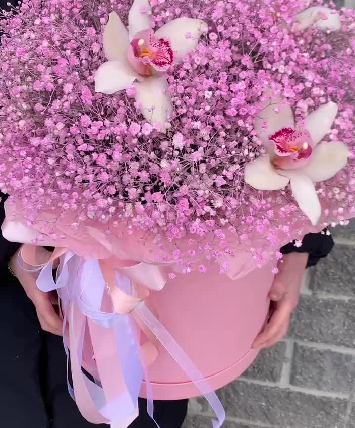 Стильная шляпная коробка со свежими цветами станет идеальным подарком для самых любимых и близких! Памятка для букета:1. Чистая вода раз в сутки.2. Стебли подрезаем на 0,5см при каждой смене воды.3. Ставим в прохладное место, но не у окна.4. Чтобы вода оставалась свежей, не допускайте попадания листьев и лепестков в воду.5. Если это композиция в оазисе, то так же необходим ежедневный полив.